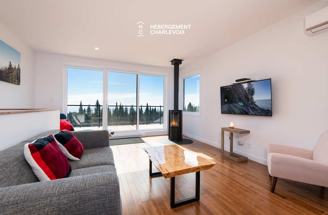 Tucked away in a conifer forest overlooking the St. Lawrence River valley, with unparalleled mountain and riverside views. Each three-storey chalet features top-floor common areas that open up onto gorgeous scenery; bedrooms are on the middle level ‒ a more intimate floor plan offering lovely peeks through treed glades.