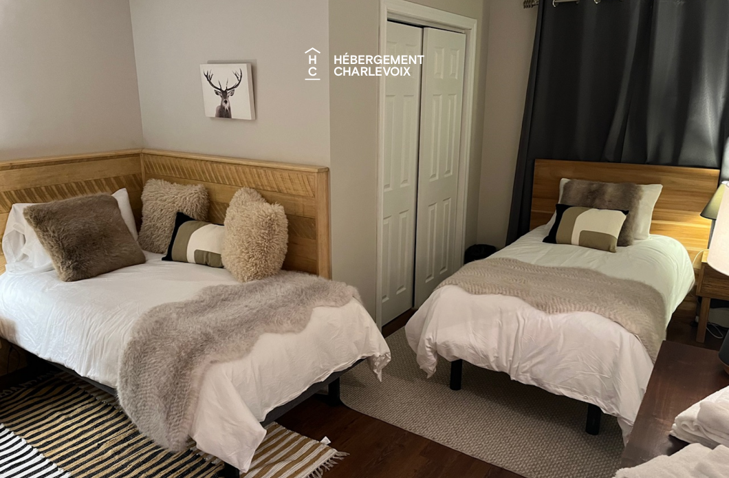 This luxuous cottage is located on moutain with large and numerous windows that allow you to contemplate the marvelous view of the St-Lawrence River. There is all that you need such as a pool table, a home theater, etc. for an unforgettable stay!